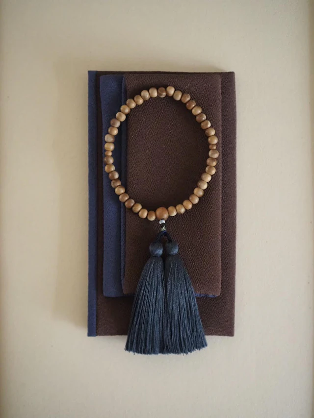 潔さと透明感が特徴的なお数珠。珠と珠をつなぐ糸はあえて発色の良いものを選び、クリスタル(水晶)の中心部にさりげなく色を加えることで、天然石のクリアな魅力をより一層引き出しました。
